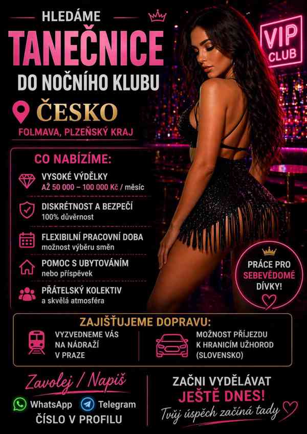 Hledáme tanečnice do nočního klubu v Česku – Folmava, Plzeňský kraj.