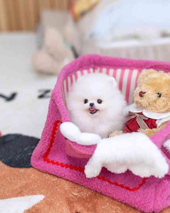 Máme k dispozici krásný vrh štěňat pomeranianů k adopci. Tato štěňata jsou zdravá, hravá a plná života, s měkkou nadýchanou srstí a okouzlující povahou.