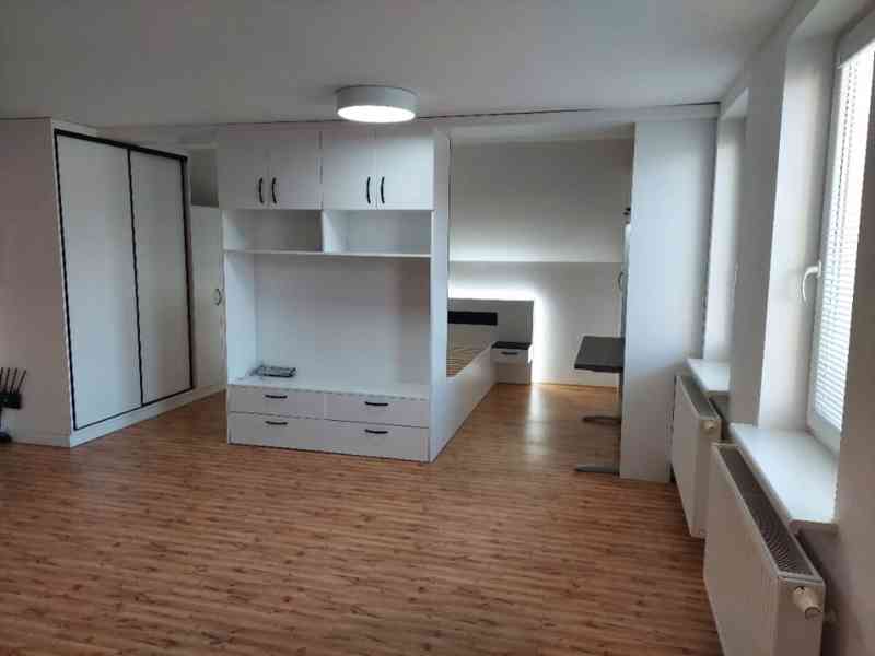 pronájem krásného bytu o dispozici 1+kk (35m) se zavedenou zahradou a parkováním. Byt se nachází v přízemí rodinného domu, kde je samostatný vchod. Parkování je zajištěno přímo u domu. K domu náleží menší zahrádka, která je již připravená na jaro. Dispozice bytu jsou : malá chodbička, kde se dá umístit skříň, koupelna včetně pračky, další chodba, kde je umístěna lednička, kde může být prostor pro vaření a pokoj. V domě je umístěný nový elektrický kotel, kde jsou zapojeny podružné hodiny, přímo k tomuto bytu.