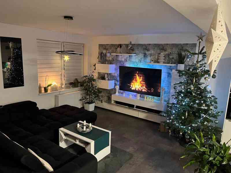 - z obývací místnosti je vstup na venkovní vyhřívanou terasu, kterou lze využívat celoročně. Terasa je vytápěná tepelným čerpadlem + infrazářiči a slouží jako prodloužení obývací části domu.