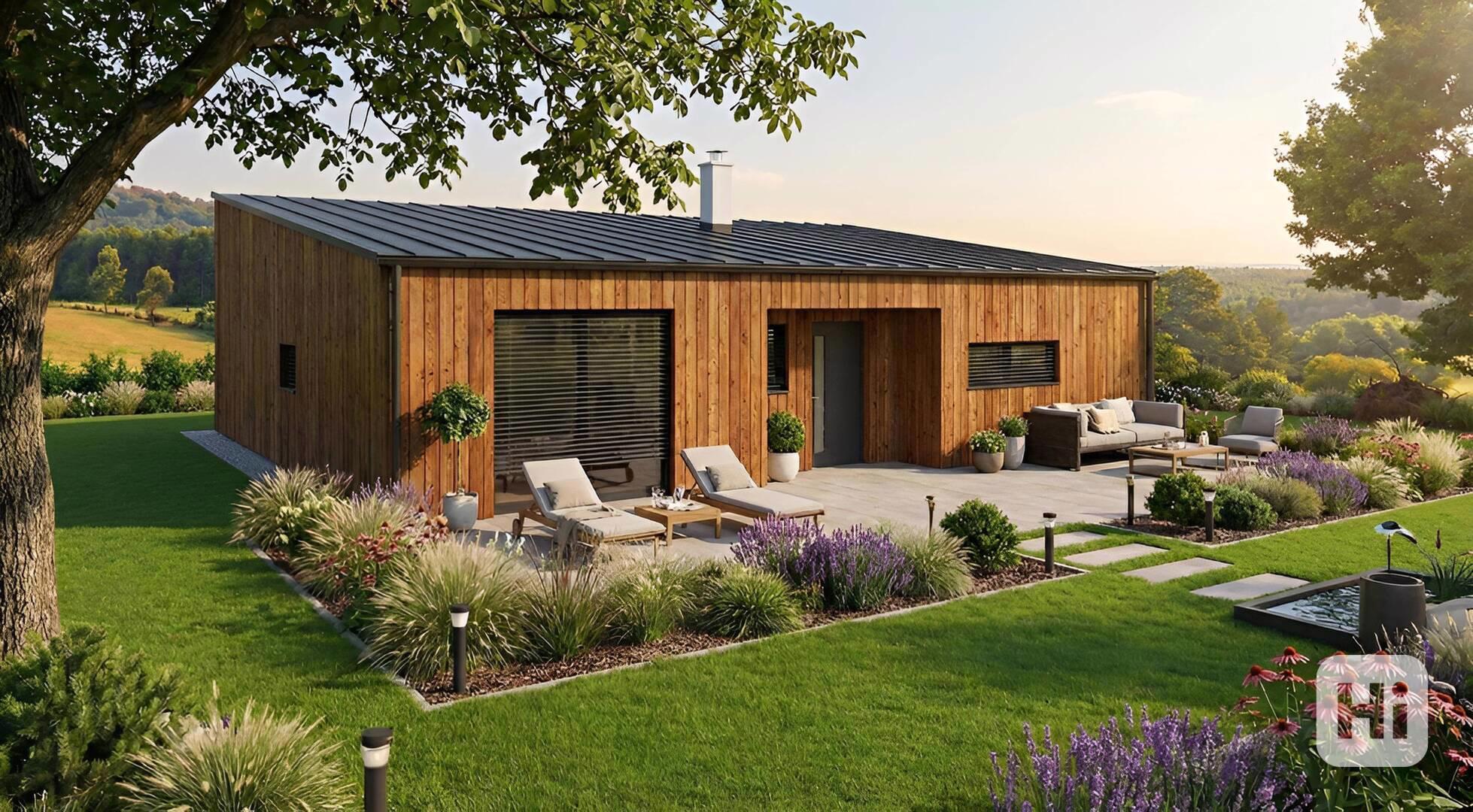 Energeticky efektivní dům s nízkými provozními náklady díky technologii dřevostavby a alternativním zdrojům.