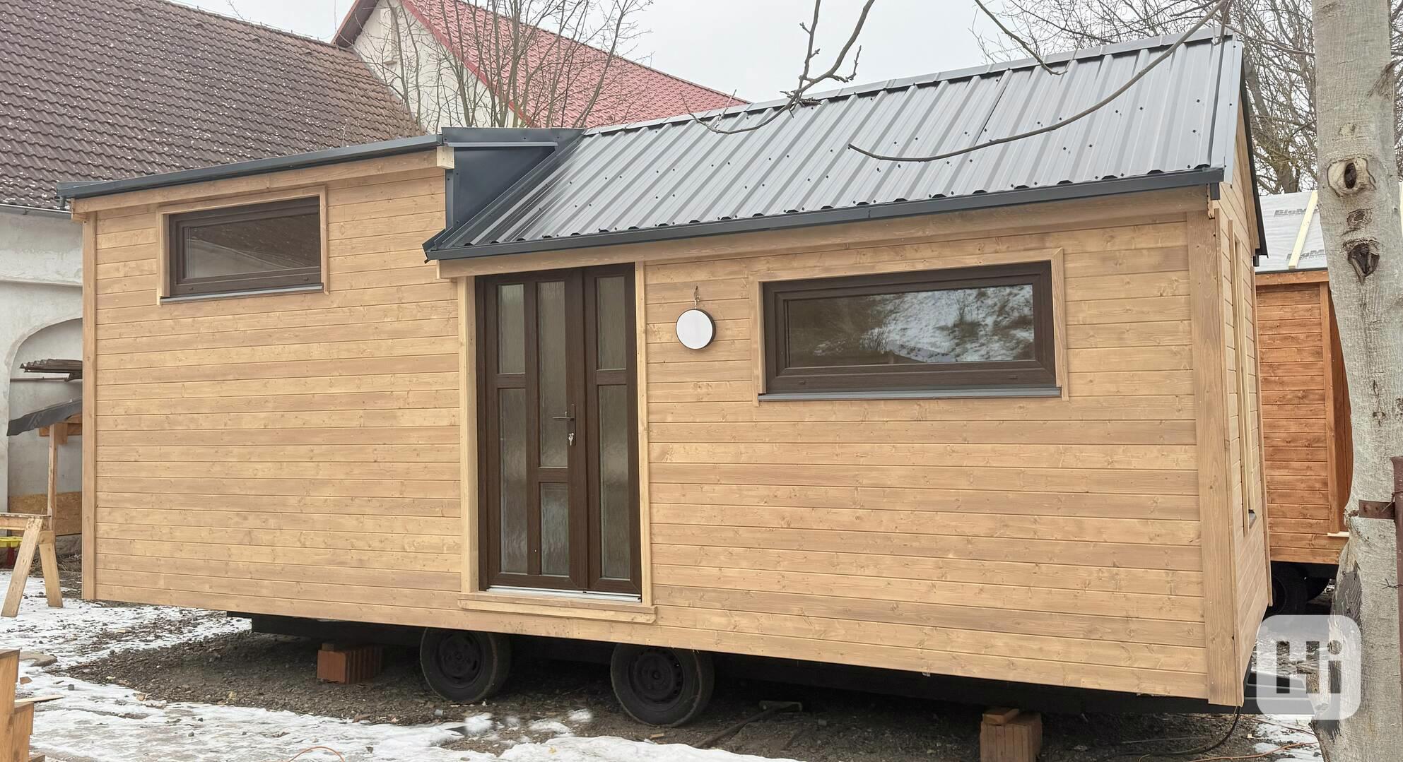 Prodám nově postavený patrový Tiny House o rozměrech 7,8 m (délka) x 2,96 m (šíře). Vnitřní výška činí 3,05 m, celková vnější výška je 4,35 m. Jako zkušený truhlář s letitou praxí v oboru maringotek si zakládám na precizním zpracování a dodržování všech norem.