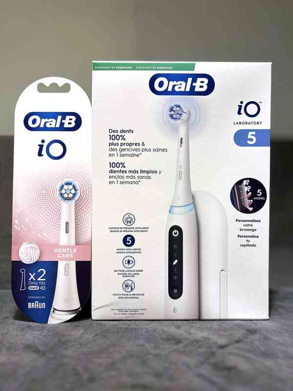 OralB iO 5, nový, nerozbalený zubní kartáček se dvěmi hlavicemi + 2 ks extra hlavice Gentle Care