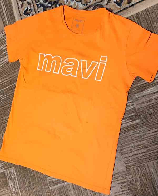 Tričko s krátkým rukávem, vel. S, šířka cca 2x47 cm, délka cca 62 cm. Vpředu drobné fleky, viz foto.