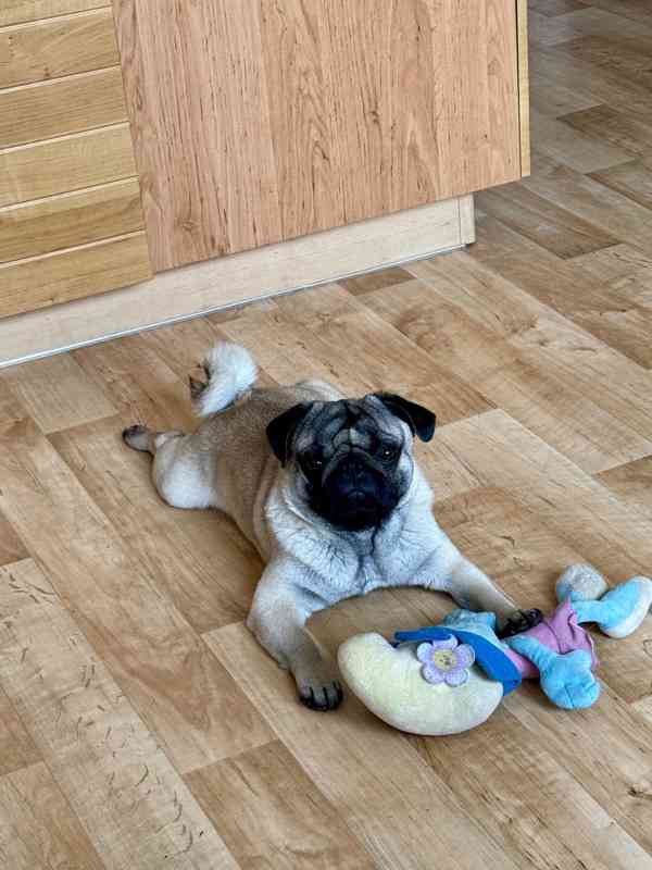 Nabízíme do dobrých rukou ročního mopse Arnieho.