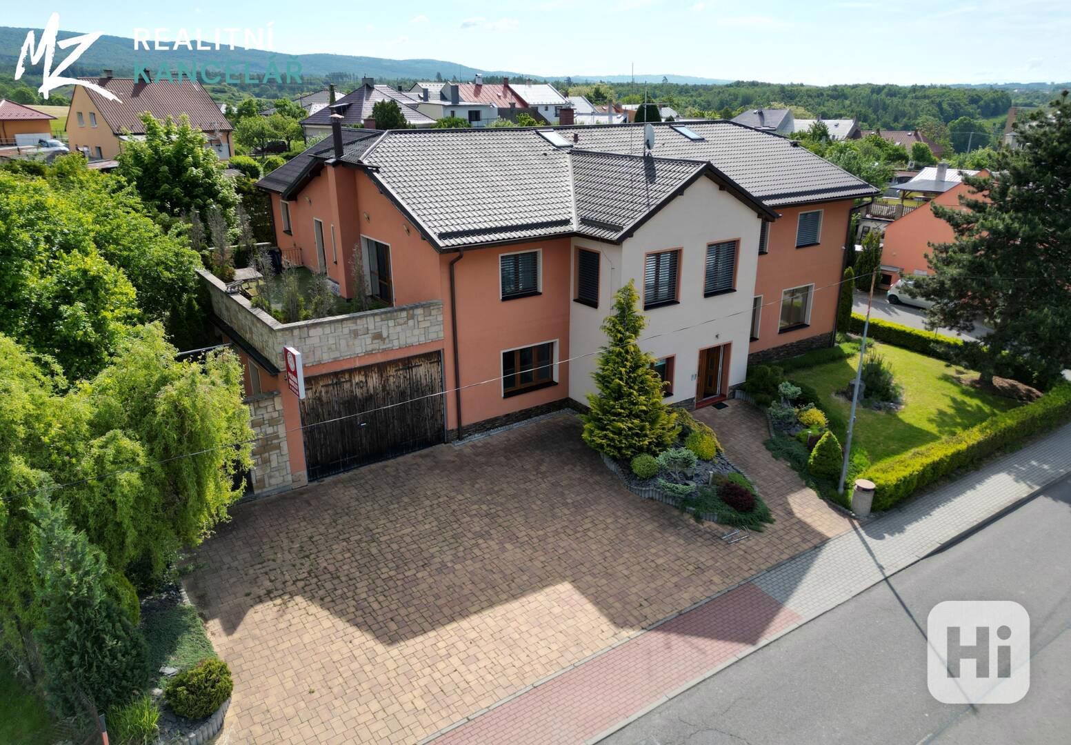 • Velká garáž s elektrickými posuvnými vraty – kapacita až 5 aut, zvýšený vjezd i pro dodávky nebo stavební vozidla
